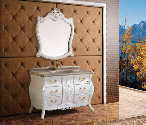 MFG-24實(shí)木仿古柜,采用泰國進(jìn)口橡木,配以水晶木紋白天然大理石臺面,以及圓弧形立體大理石臺下盆。純白色彩配以金色五金拉手,整體外觀凸現(xiàn)新一代田園風(fēng)格,產(chǎn)品游走于現(xiàn)代與復(fù)古之間,線條簡約而不簡單,品味低調(diào)而不失奢華。中間蘭花的雕刻修飾,經(jīng)由純實(shí)木手工打造,散發(fā)著強(qiáng)烈的鄉(xiāng)村田園風(fēng)情和野趣,讓那種輕松、不雕琢的感官占據(jù)冗繁的心靈,享受徹底的純凈的世界。